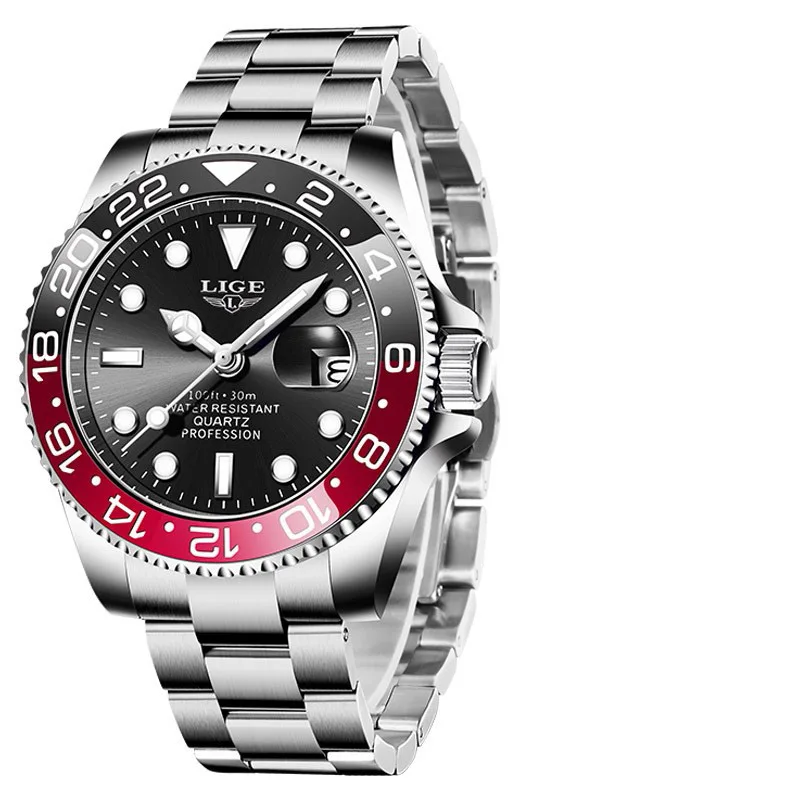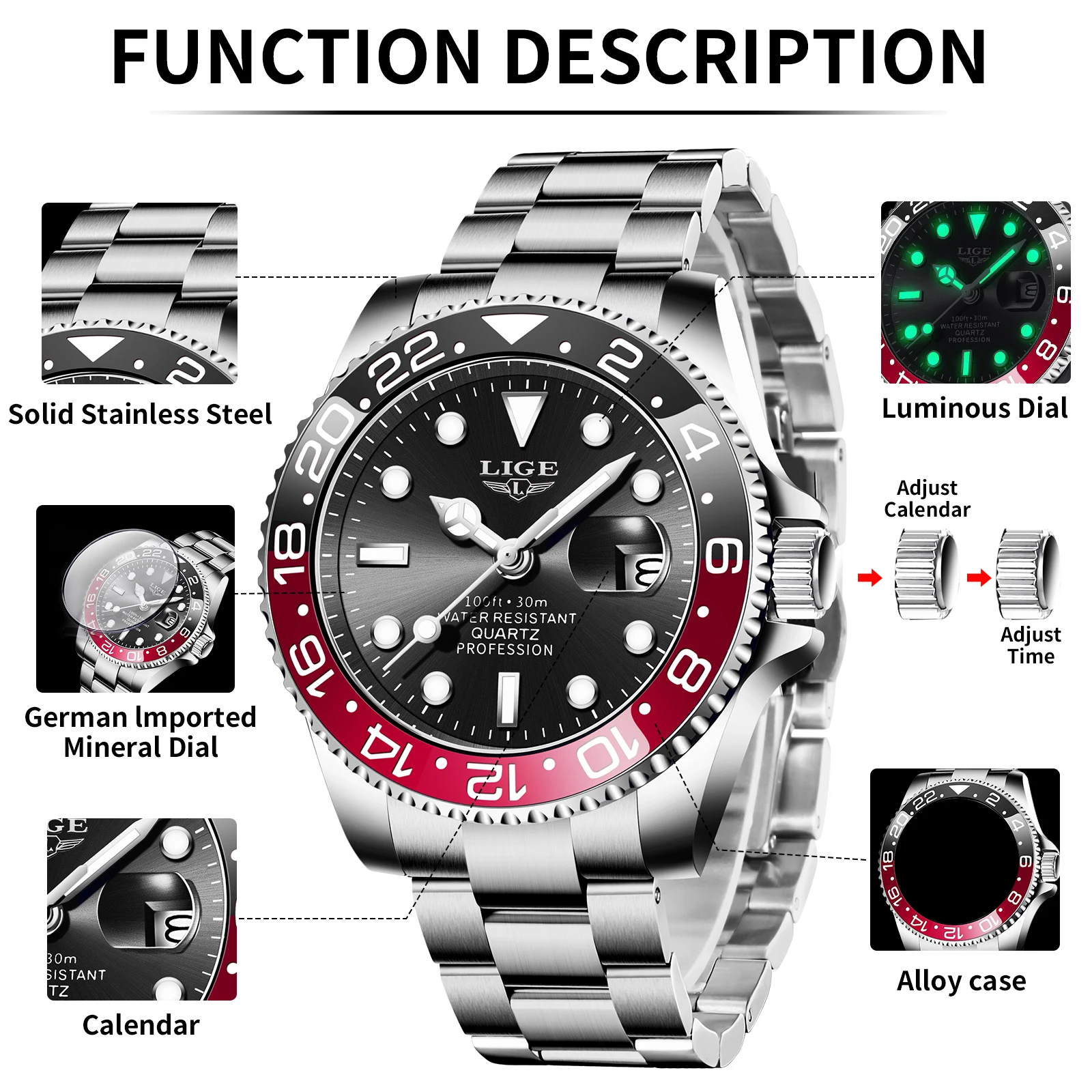 Relógio de pulso LIGE de quartzo, novo, masculino, luminoso, em aço inoxidável, relógio de luxo para negócios, à prova d’água, presente, relógio masculino + caixa