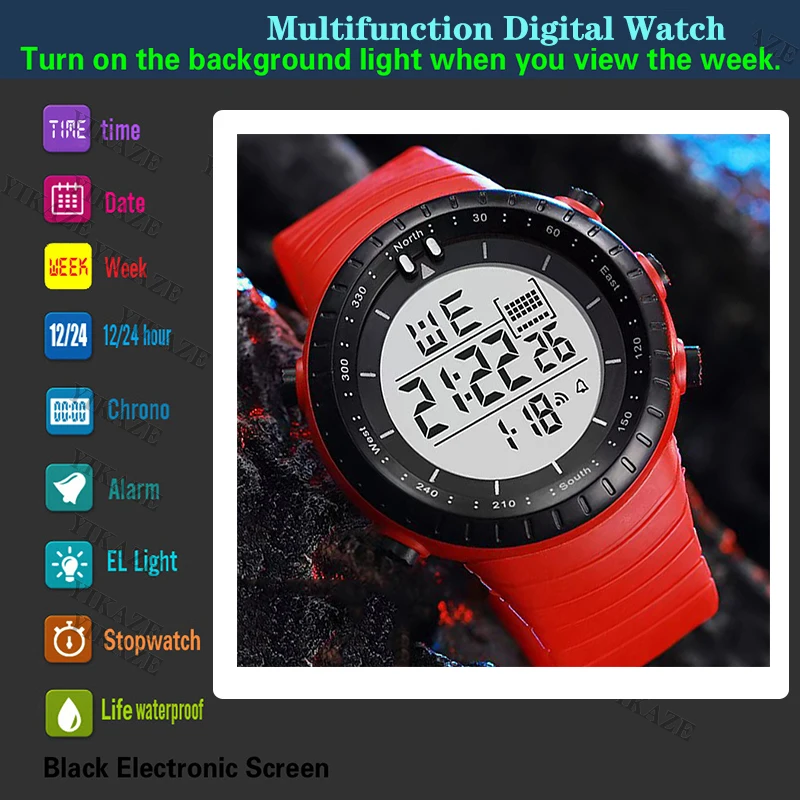 Relógio eletrônico masculino multifuncional esportes ao ar livre relógio rotativo dial despertador led relógio de pulso digital para homem estudante crianças
