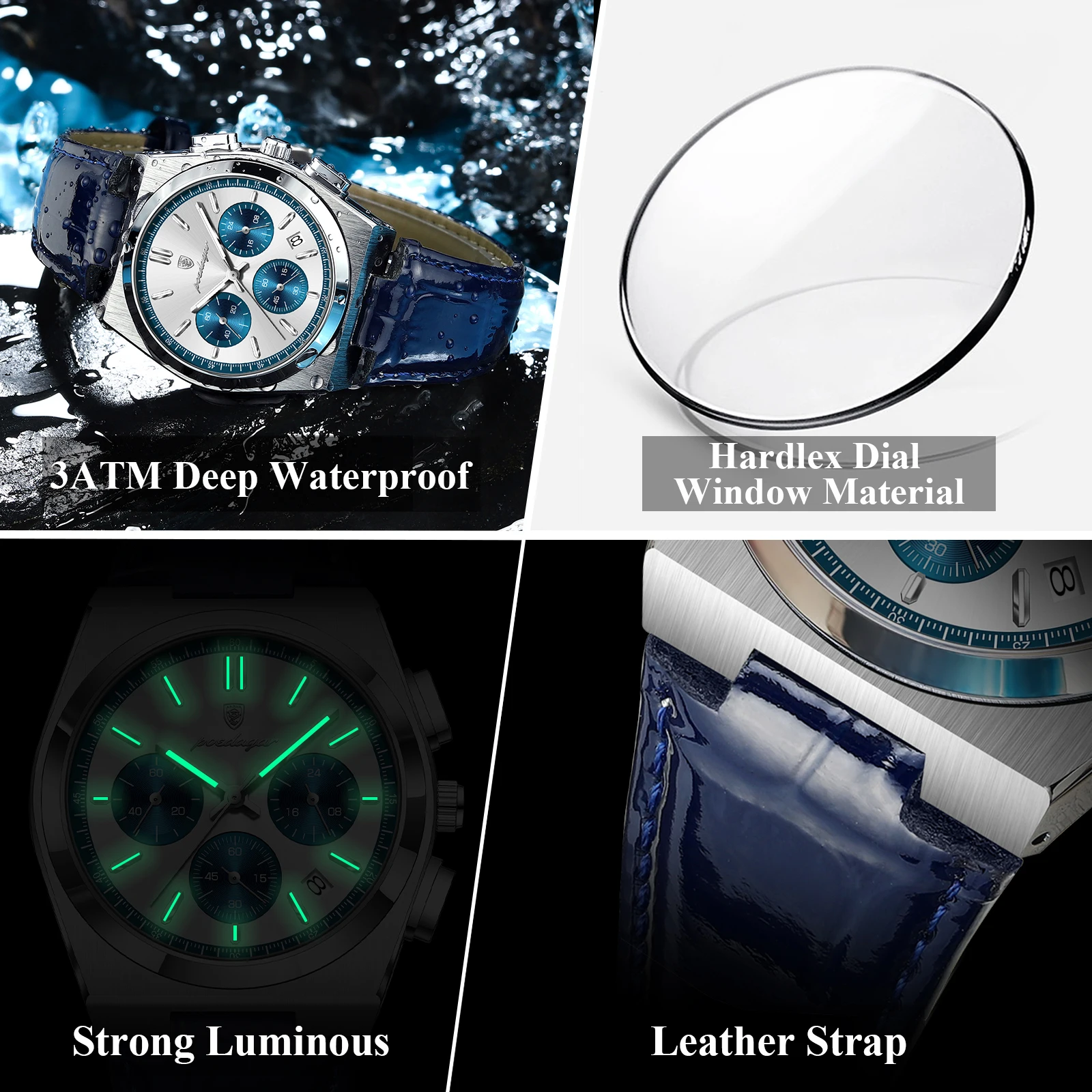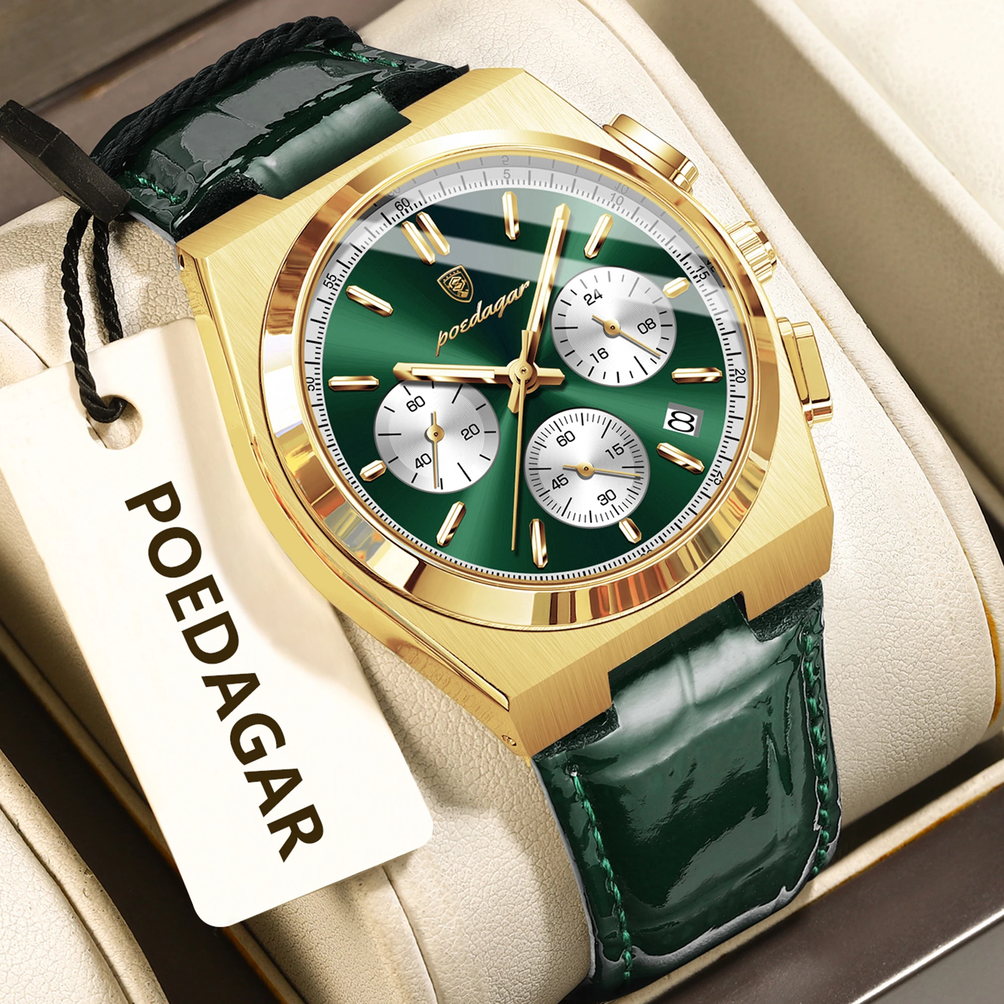 Relógio masculino clássico de luxo POEDAGAR, à prova d’água, luminoso, cronógrafo, data, quartzo, relógio de pulso masculino, relógio esportivo moderno com pulseira de couro.
