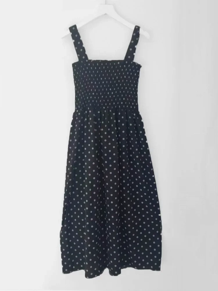 Robe femme verão bolinhas vestidos femininos elegante pescoço quadrado sem mangas chiffon vestido longo super desconto vestidos para mujer