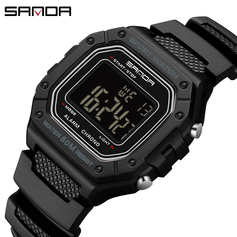 Sanda 2156 moda masculina relógio militar resistente à água esporte relógios exército grande dial led digital relógios de pulso cronômetros para o sexo masculino
