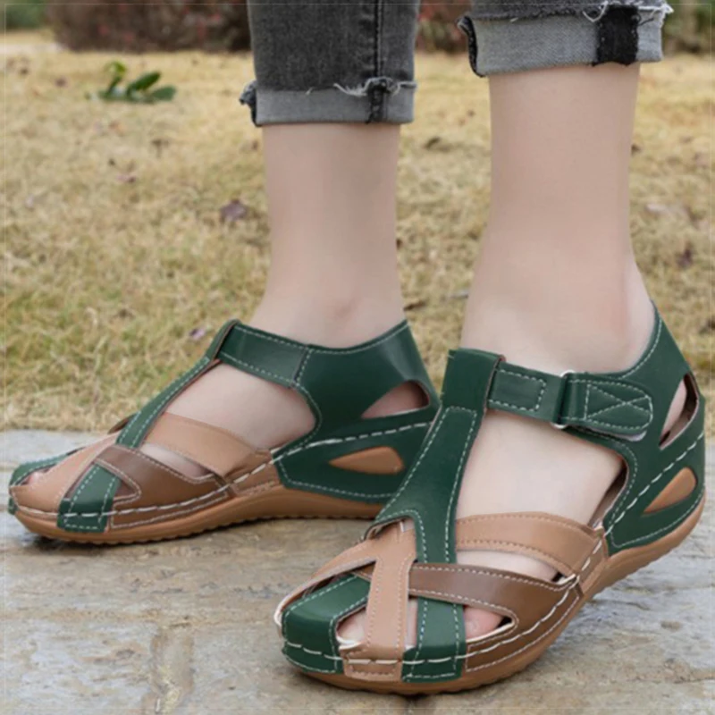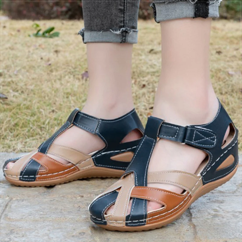 Sandálias femininas sandálias de salto casual com sapatos de cunha mulheres 2025 sandálias de verão cor misturada sapatos de verão calçados de salto feminino