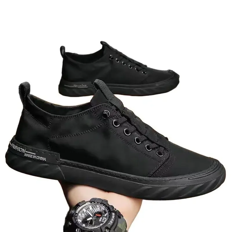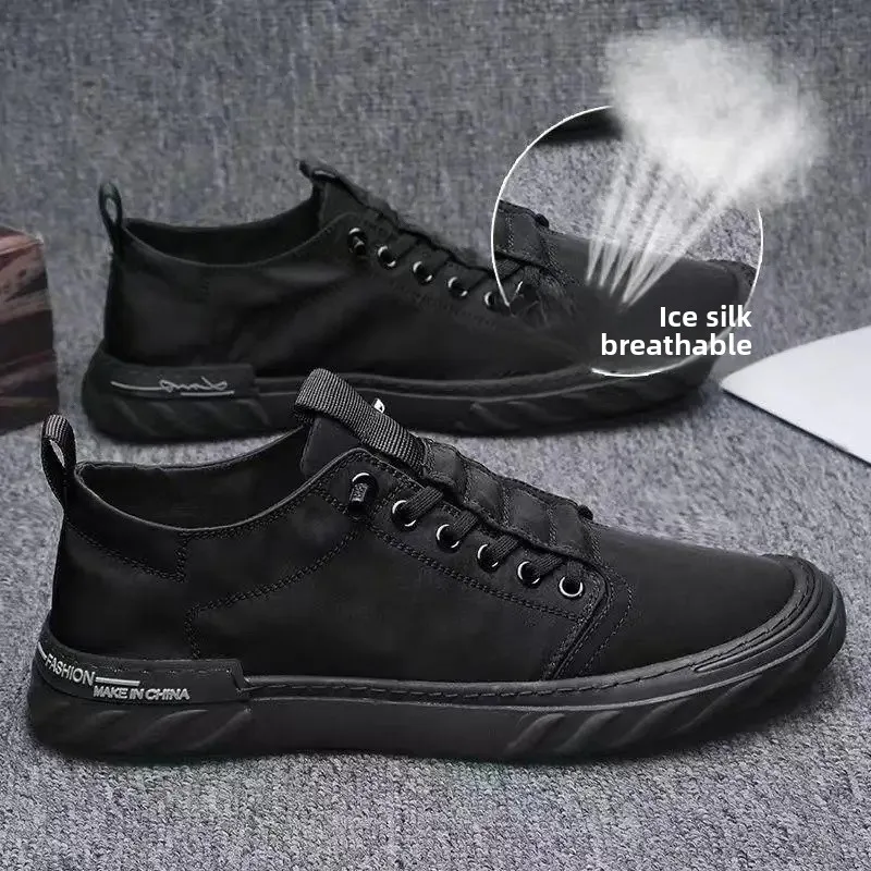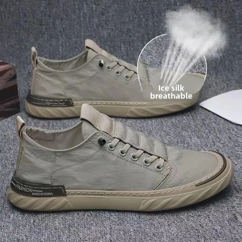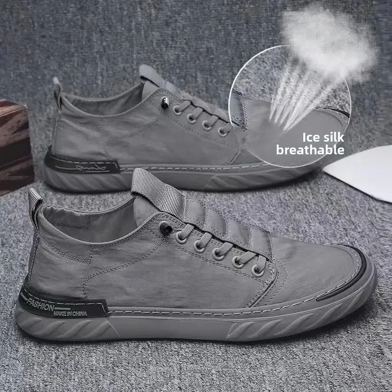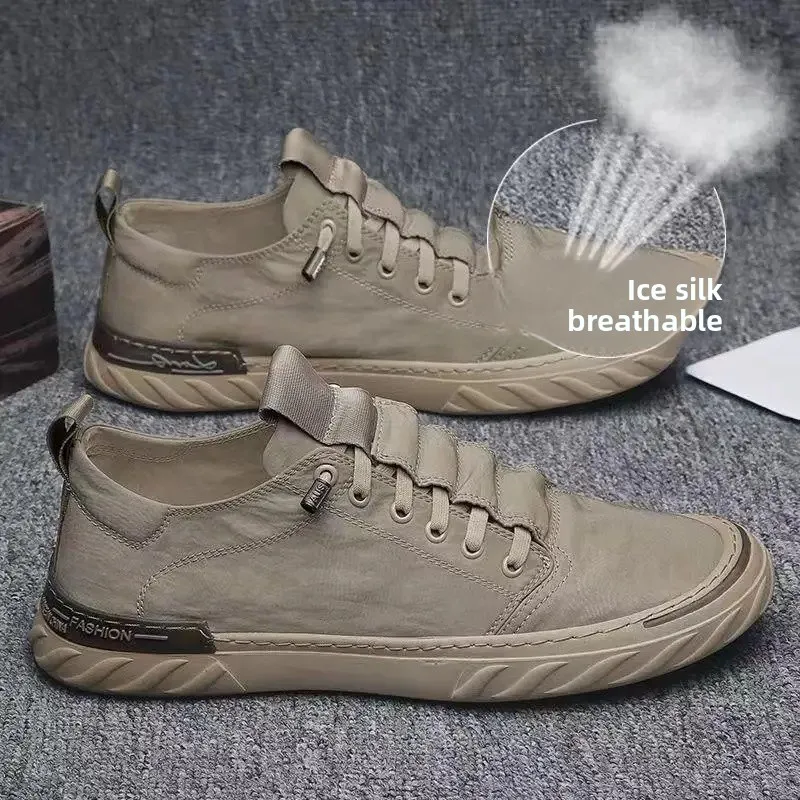 Sapatos masculinos de lona de seda gelo verão respirável fino trabalho esportes casuais na moda lona deslizamento-em sapatos sola de borracha salto plano
