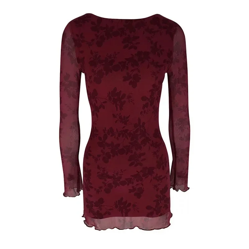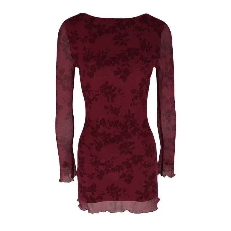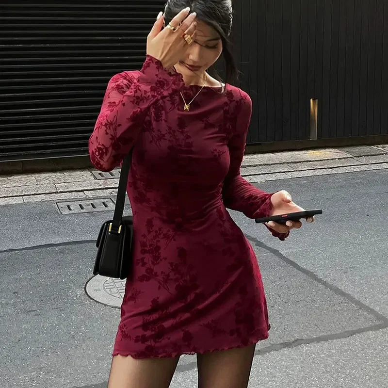 Sexy floral renda manga longa em torno do pescoço vestido feminino primavera verão outono elegante moda maxi vestido da china continental