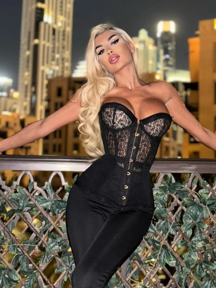 Número do modelo: Lace See Through Corset Vest