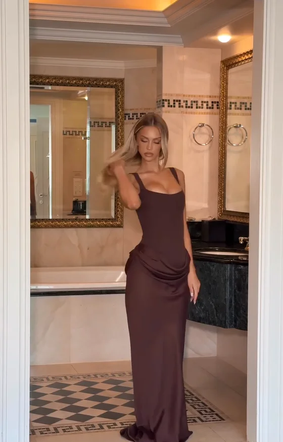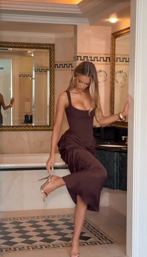 Número do modelo: Solid Low V-neck Ruffle Sling Dress