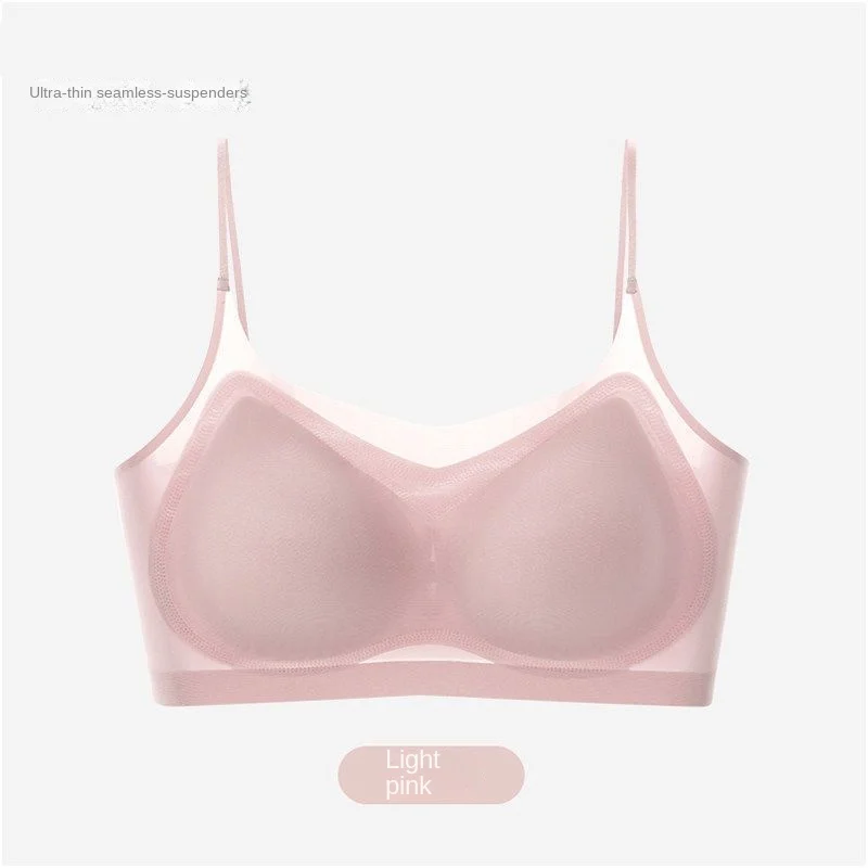Sutiã de seda gelo respirável ultrafino, roupa íntima feminina, colete halter sem costura, em forma de u, puxar para trás