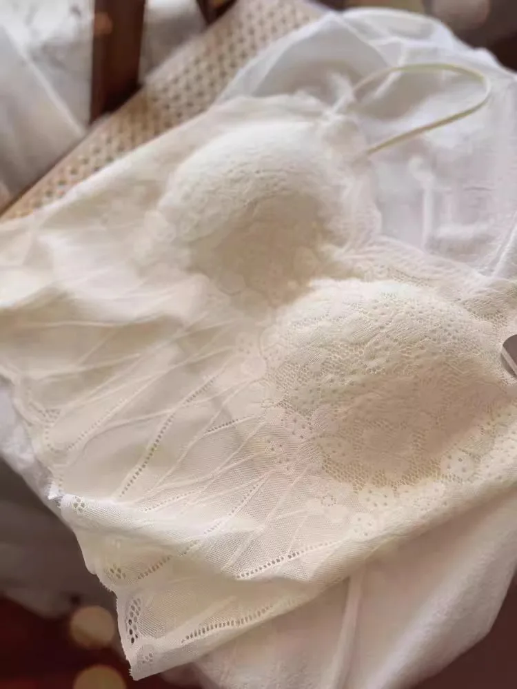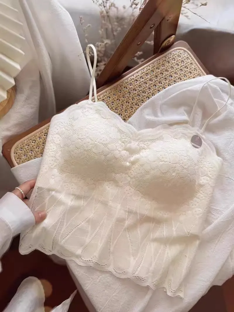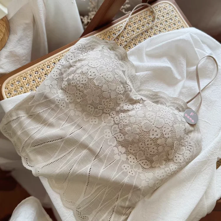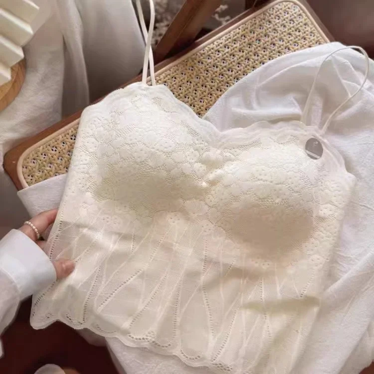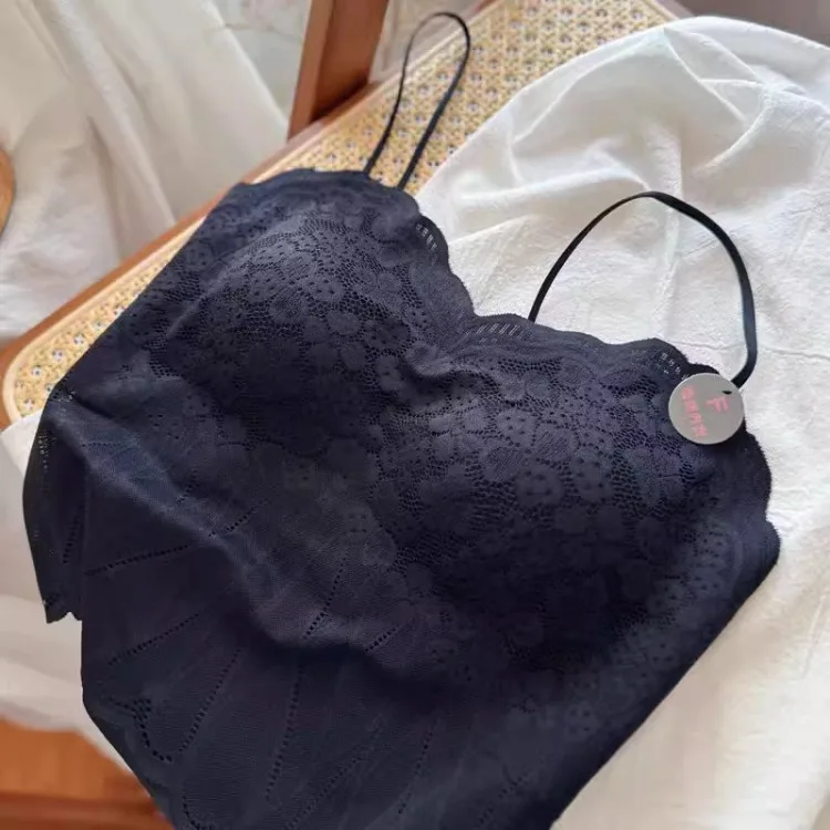 Top de Renda Sexy com Alças, Brtte Sem Costura para Mulheres, Sutiã Sem Arame com Almofada para o Peito, Estilo de Top com…