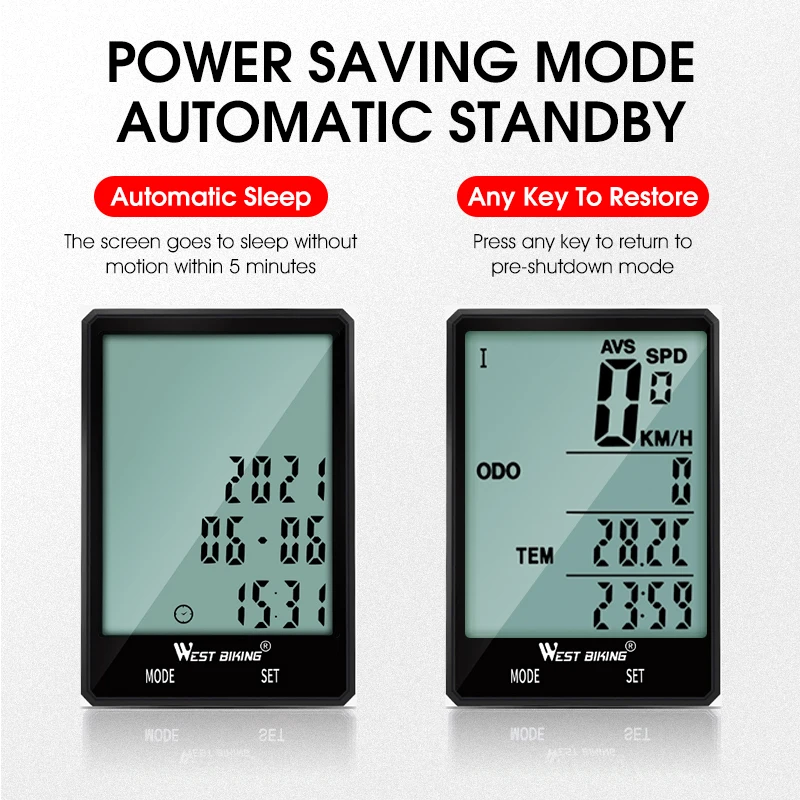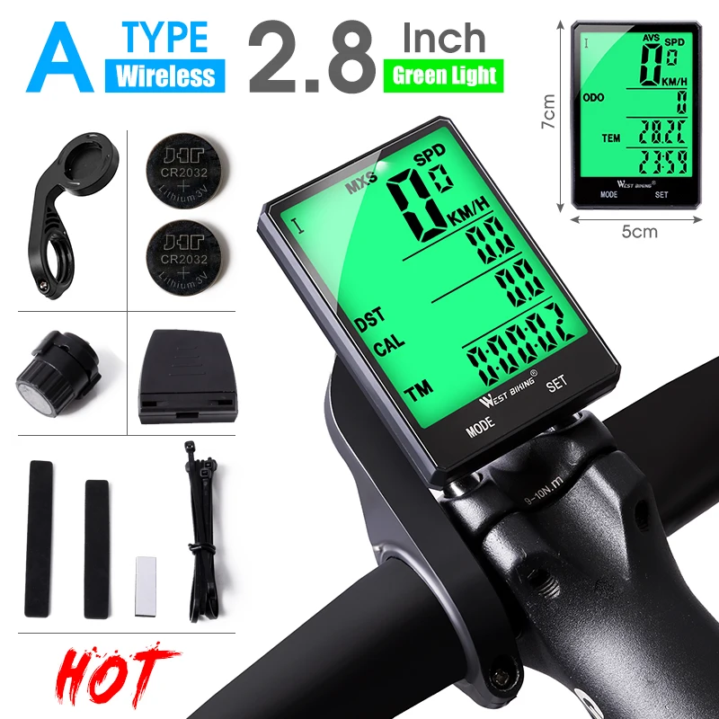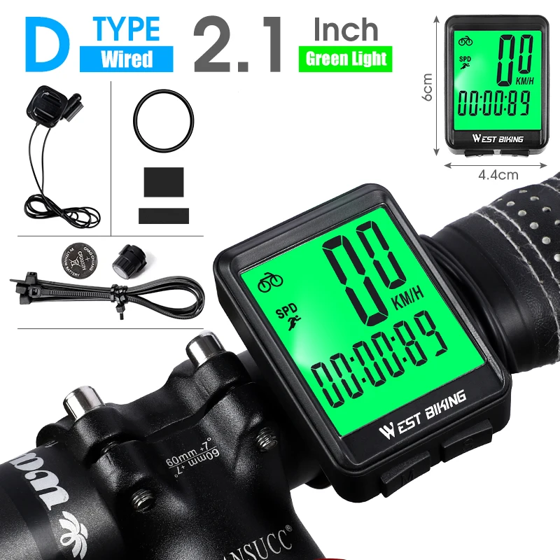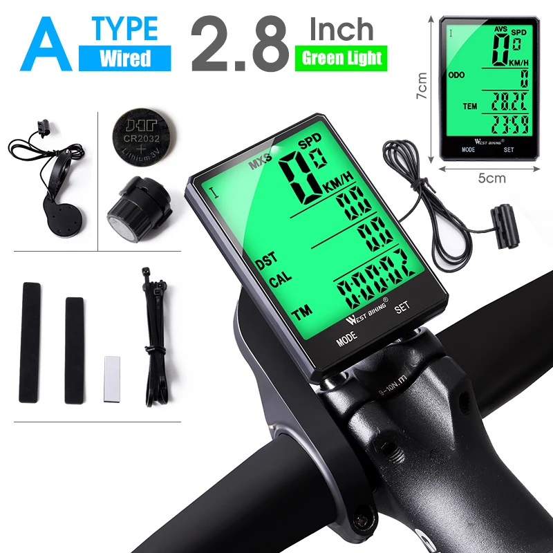 Velocímetro digital para bicicleta WEST BIKING com tela grande, LCD à prova d’água e retroiluminação, compatível com conexões sem fio e com fio. Odômetro para bicicleta.