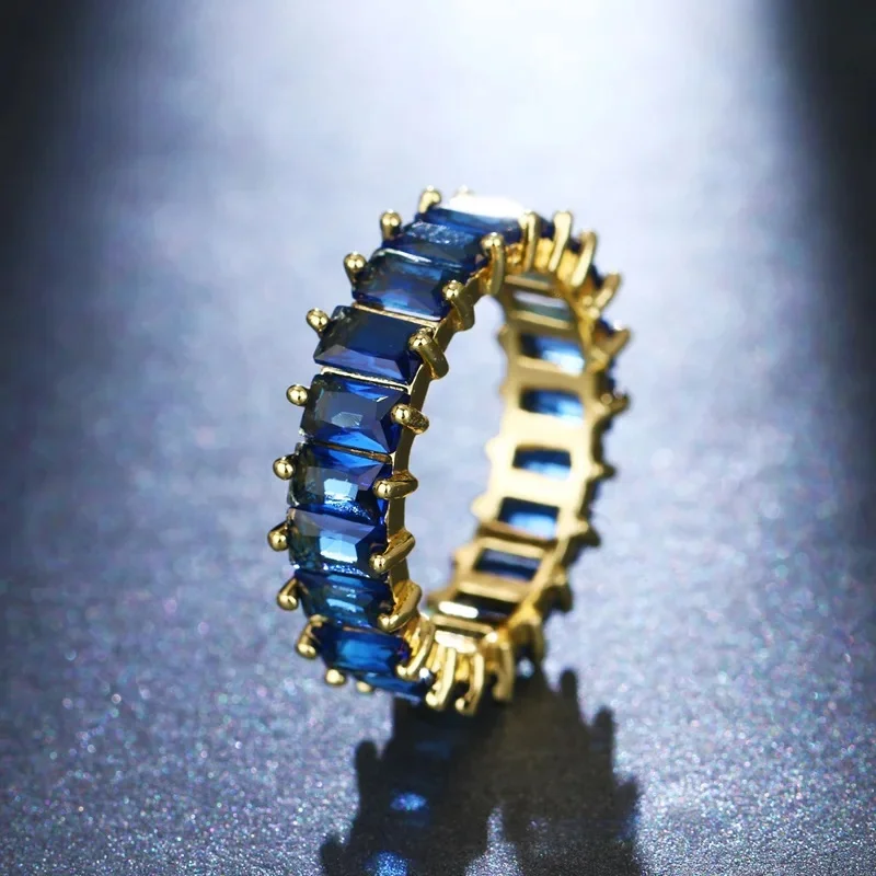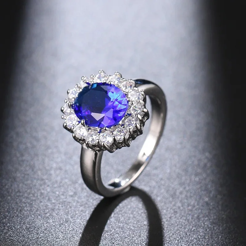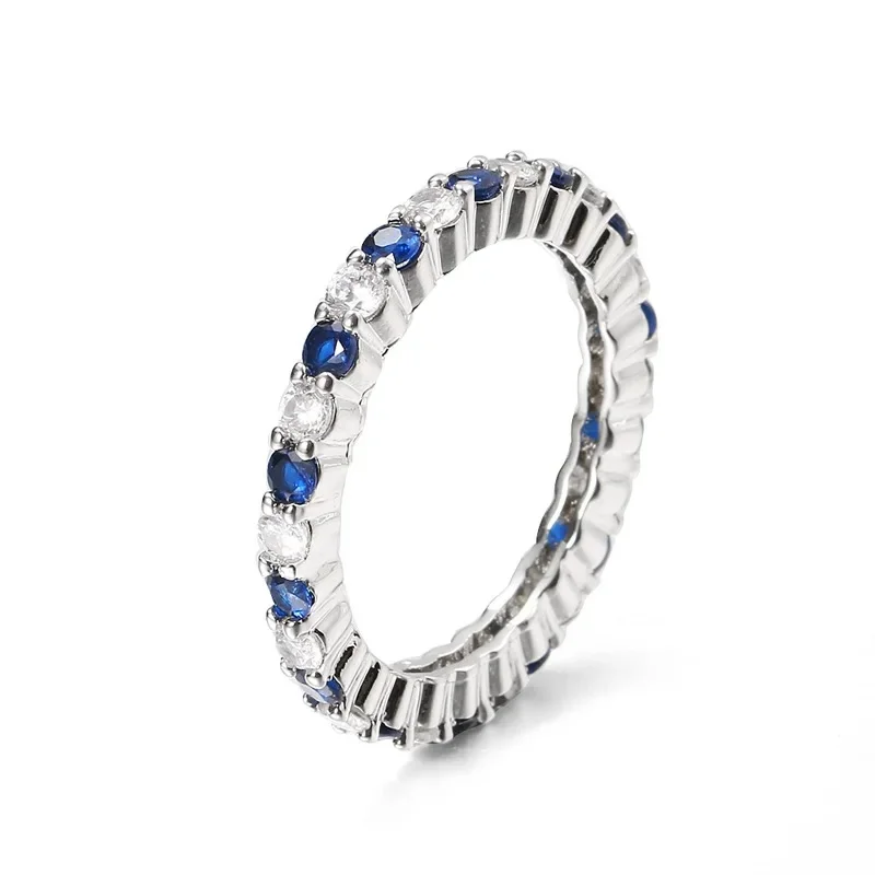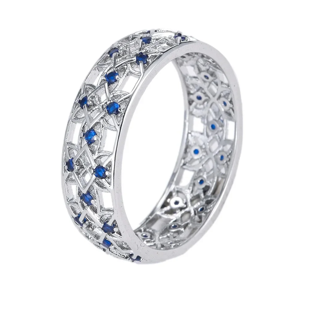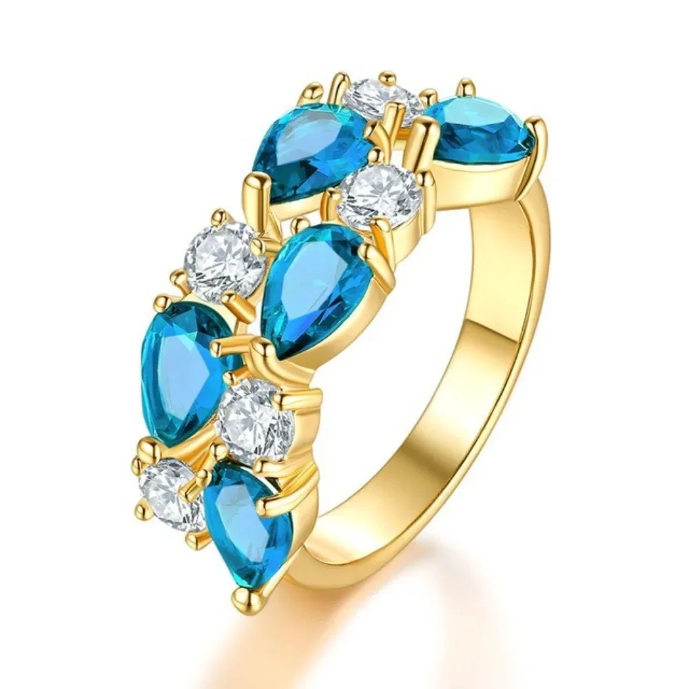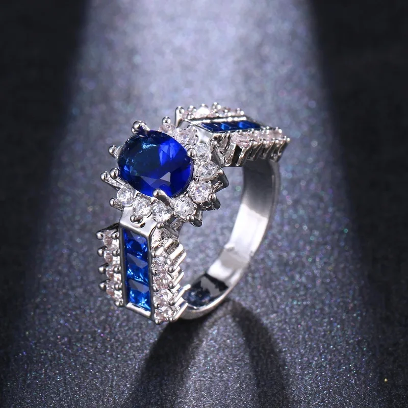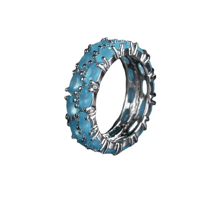 Venda quente da temporada nova série de anel de zircão azul cobre micro-montagem jóias acessórios transfronteiriços elegante casamento noivado