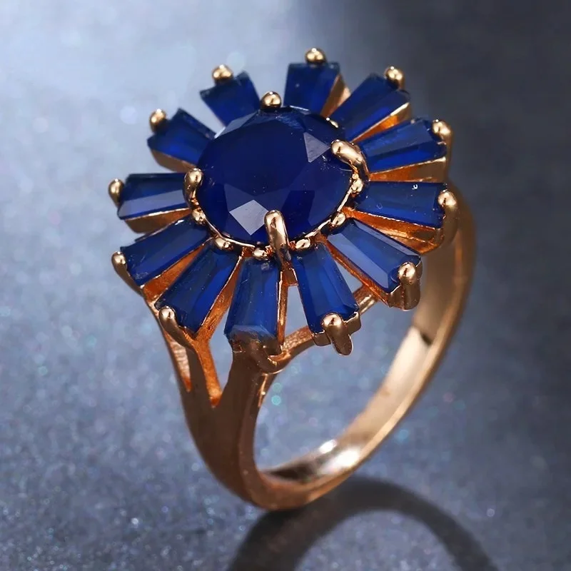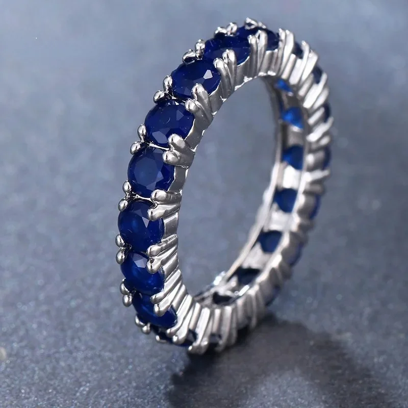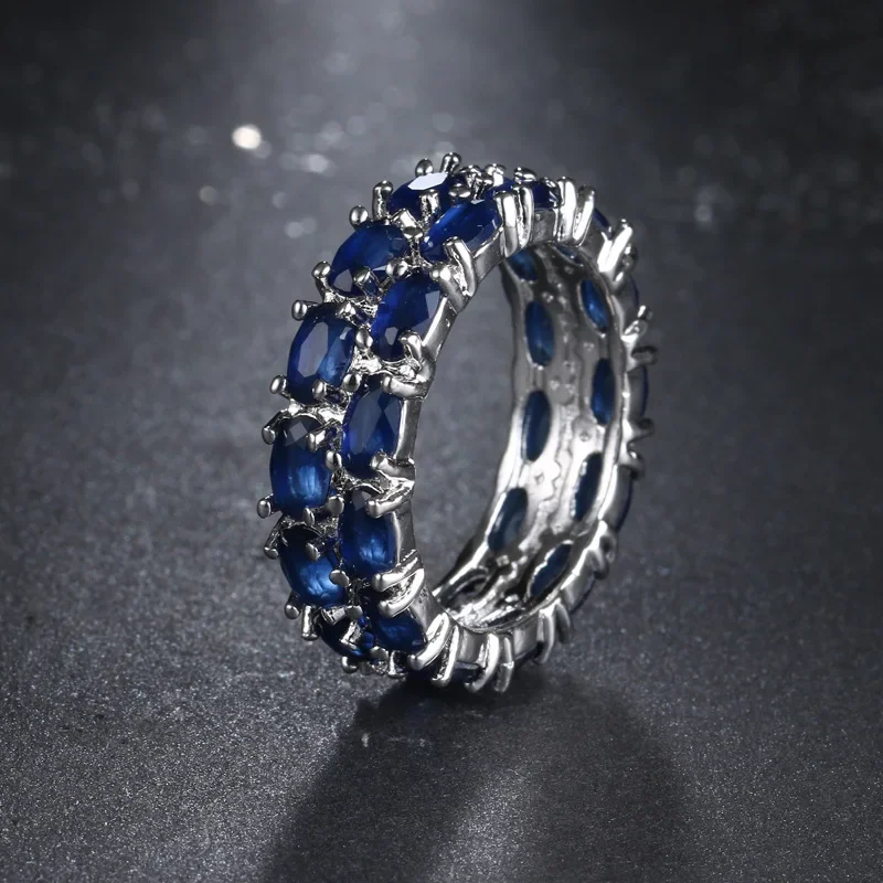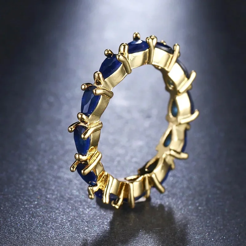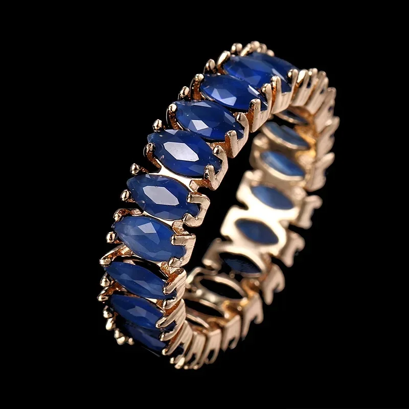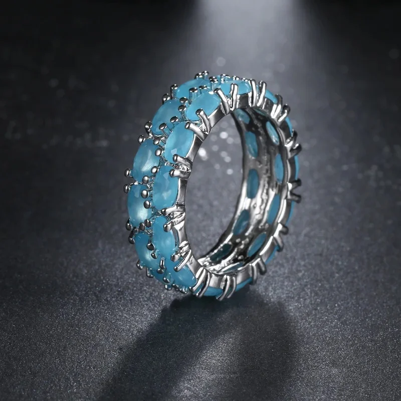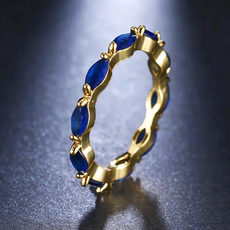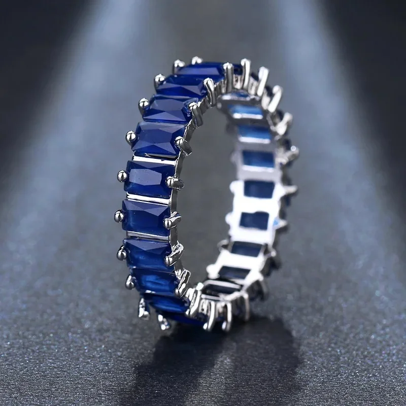 Venda quente da temporada nova série de anel de zircão azul cobre micro-montagem jóias acessórios transfronteiriços elegante casamento noivado
