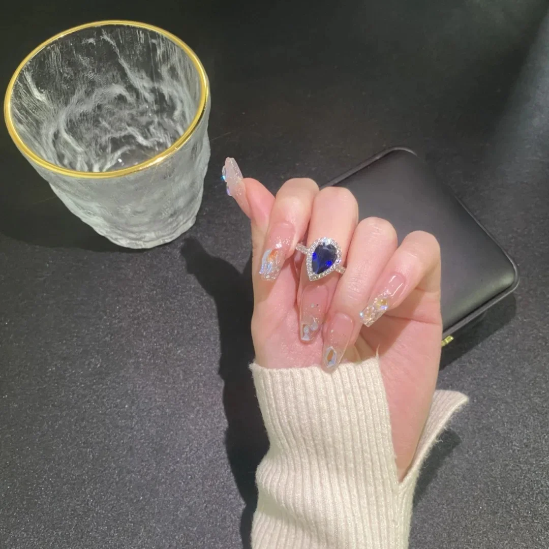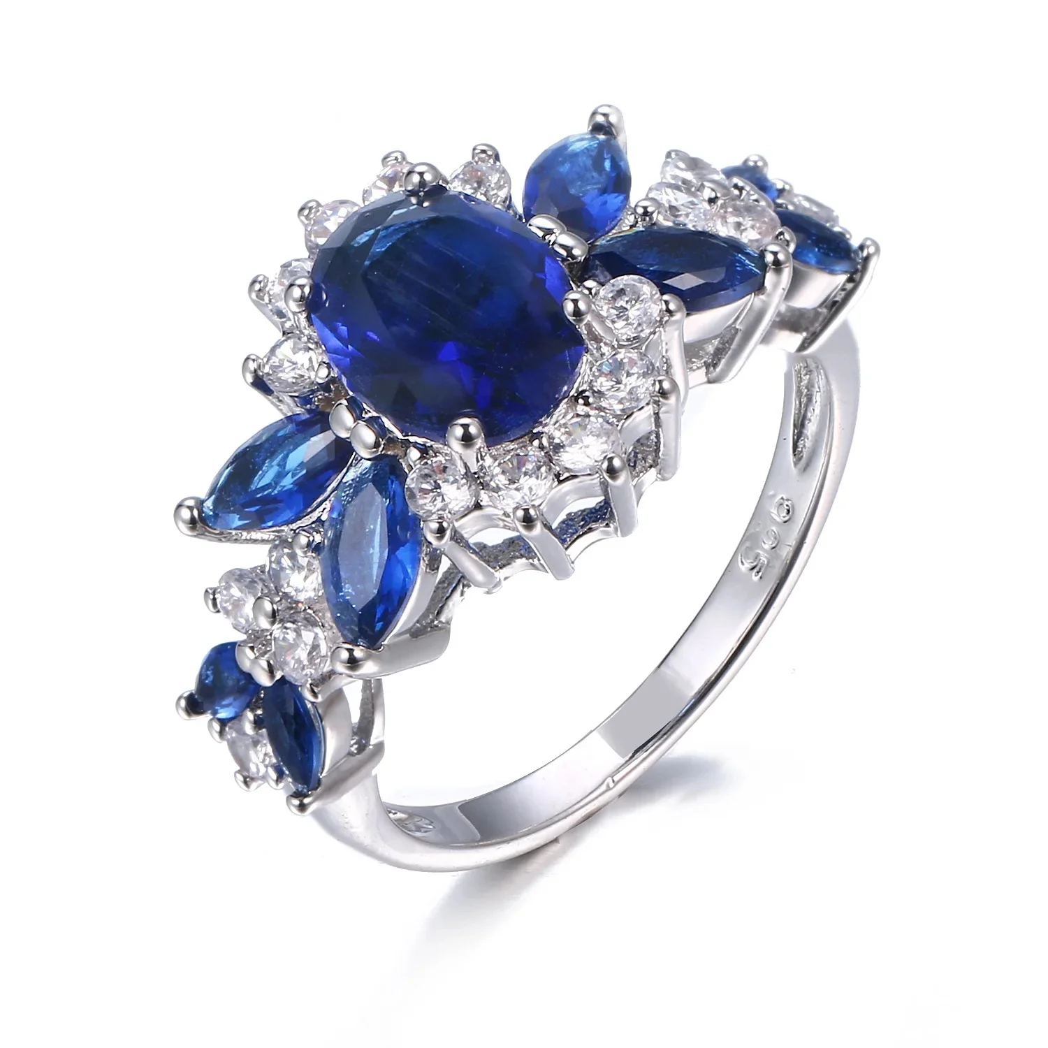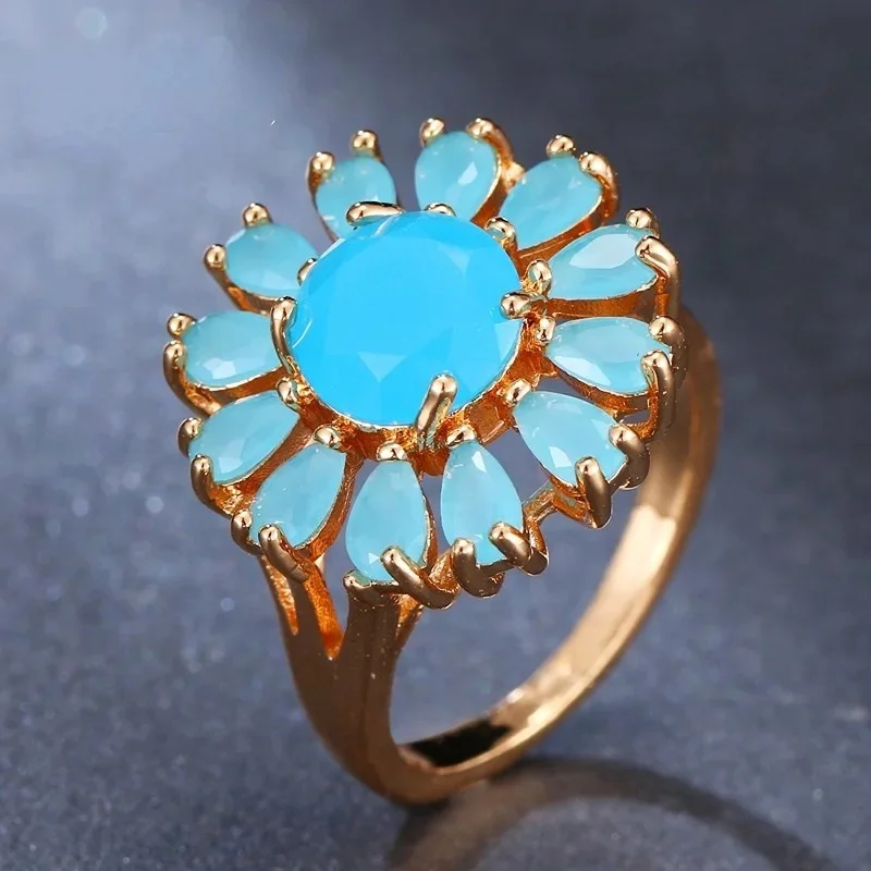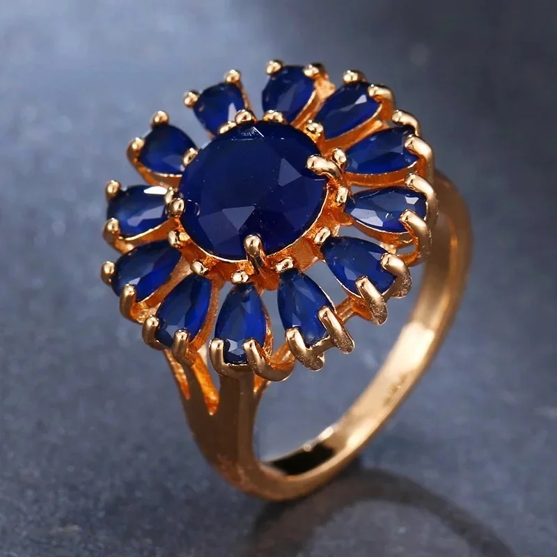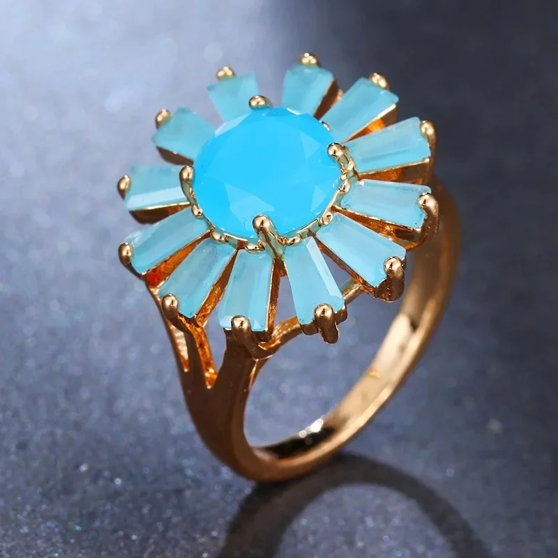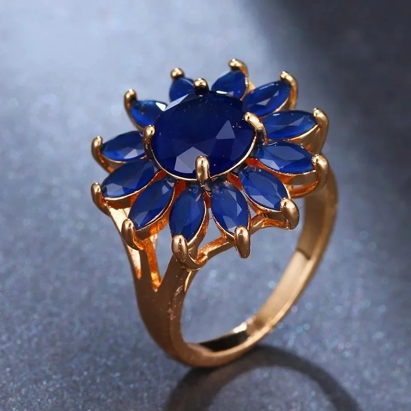 Venda quente da temporada nova série de anel de zircão azul cobre micro-montagem jóias acessórios transfronteiriços elegante casamento noivado