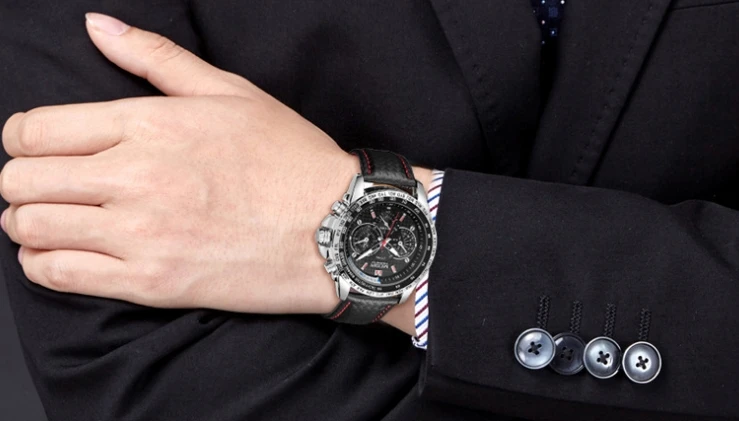 Verão novo relógio masculino moda negócios lazer à prova dwaterproof água multifuncional relógio falso três olhos luz da noite relógio