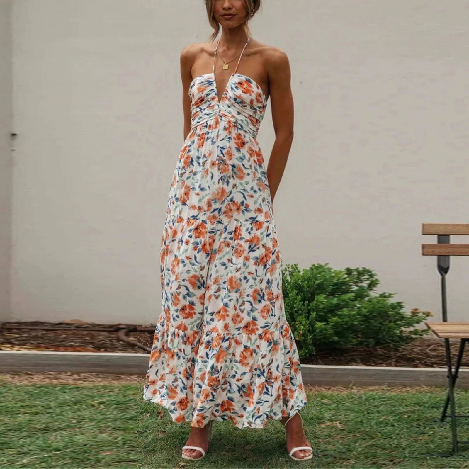 Vestidos de festa femininos cor sólida alça espaguete decote em v longo emenda chique fora do ombro em camadas tule vestidos formais para mulher