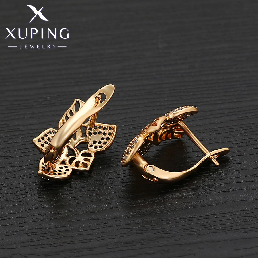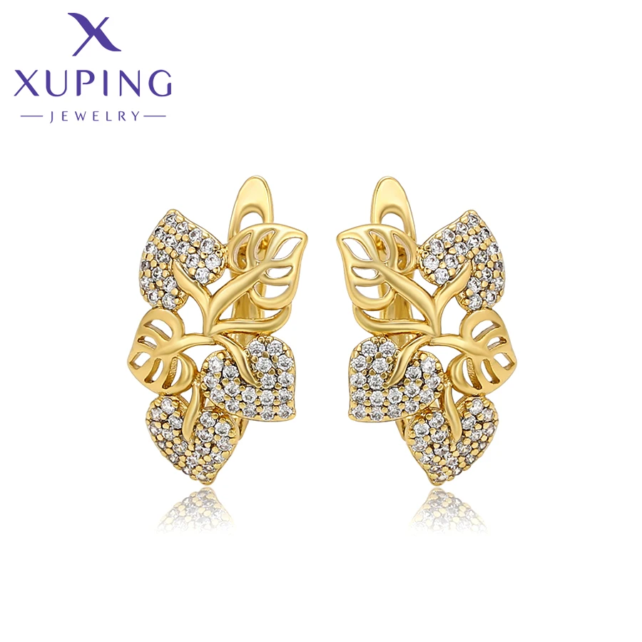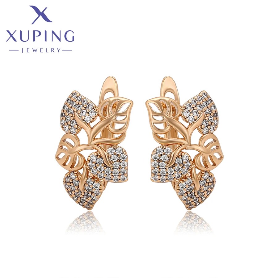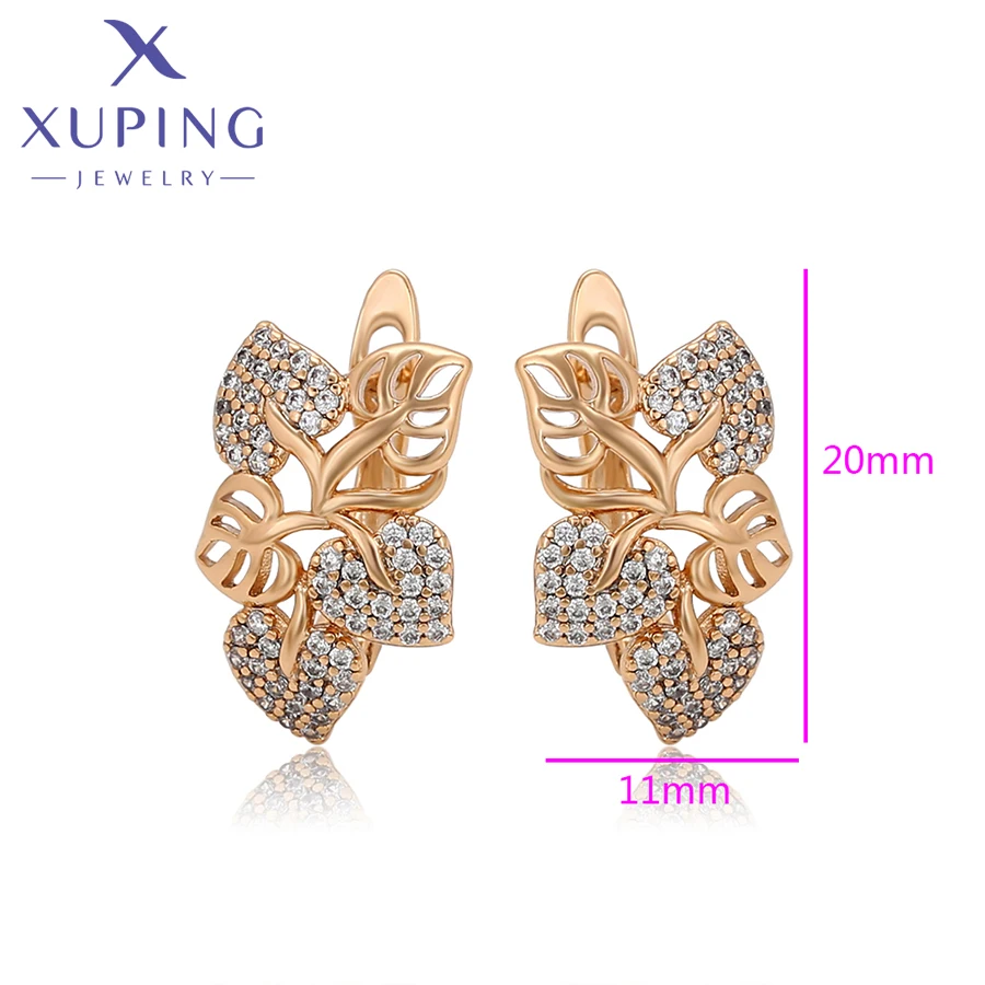 Xuping-Folha Forma Huggies Brinco para Mulheres, Pedra Branca, Encantos da Moda, Jóias Populares, Presente, X000450056