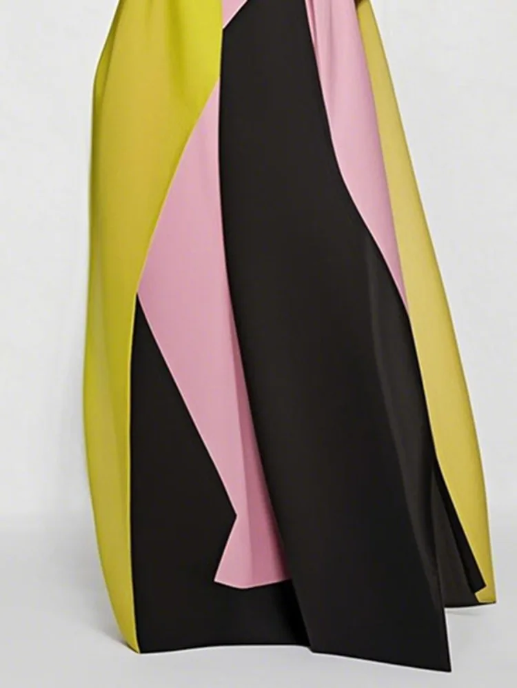 Yeezzi 2025 novo verão férias a linha vestido para mulheres moda cor-bloco plissado o pescoço casual fim de semana saindo maxi vestidos